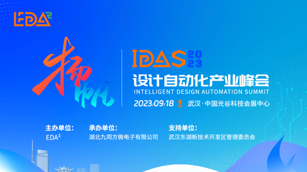 由EDA²主办的首届IDAS设计自动化产业峰会(Intelligent Design Automation Summit)将于9月18日在武汉·中国光谷科技会展中心举行。大会预计邀请国内外300+半导